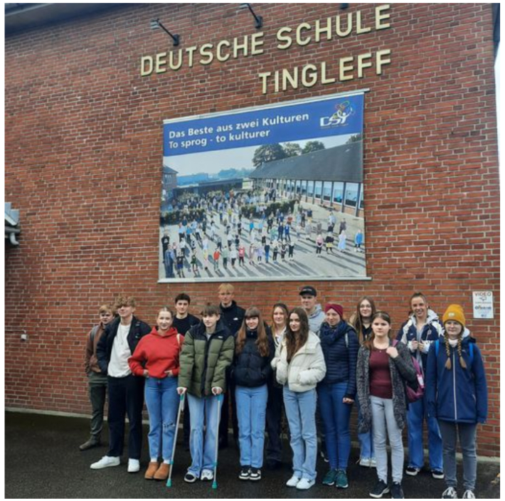 Am Mittwoch, den 24.4.2024, machten die SchülerInnen des Dänisch Kurses der Klassen 9 und 10 einen Ausflug nach Dänemark. Wir fuhren mit Unterstützung des Interreg Transportpools mit einem Bus nach Tinglev in Dänemark. Um kurz nach 9 Uhr erreichten wir die deutsche Nachschule und wurden von Frau Varm freundlich in Empfang genommen. Sie gab uns einen ersten Einblick in die Räumlichkeiten der Schule und informierte uns über den Tagesablauf.