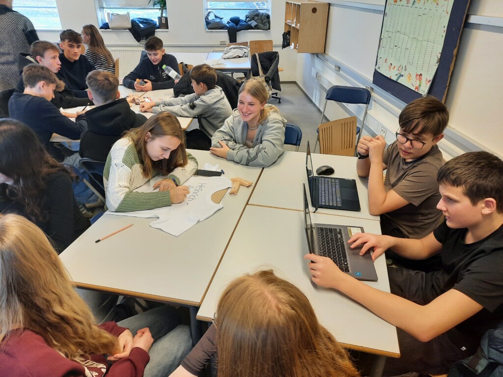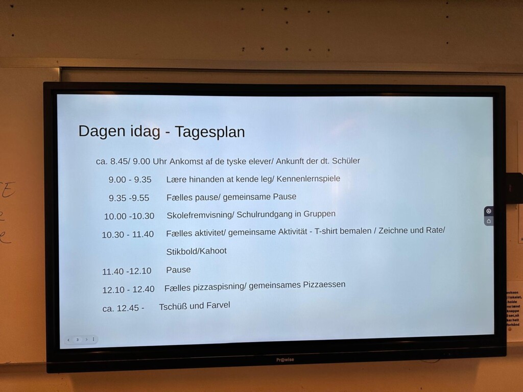 Als wir ankamen wurden wir freundlich in Empfang genommen und zum Klassenzimmer der dortigen achten Klasse begleitet. Durch Kennenlernspiele und Vorstellen an Gruppentischen auf Deutsch, Dänisch oder auch Englisch lernten wir uns noch besser kennen.