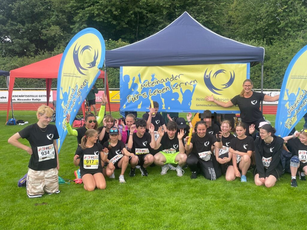 Zwei Teams der Heinrich-Andresen-Schule konnten zusammen einen ganzen Marathon erfolgreich absolvieren. Als eine von zwei Schulen haben wir unsere Staffeln mit nur einer Erwachsenen und sonst ausschließlich auf Kinderbeinen laufen lassen. Wir können uns sehen lassen! Wir haben nicht nur als einzige Staffel eine Urkunde erhalten (weil wir das Schlusslicht mit unserer Spaßstaffel gemacht haben) sondern wir haben und auch souverän im unteren Mittelfeld platziert. Wir lassen auch gern denjenigen den Vortritt, die lange und regelmäßig trainieren.