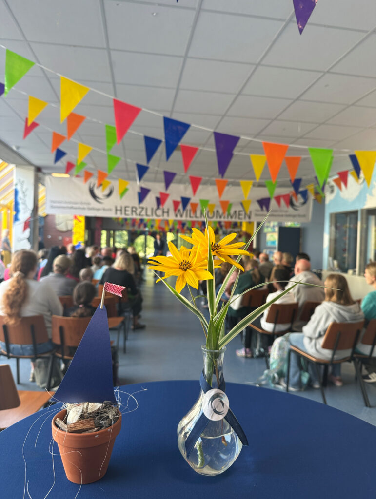 Am 09.09.2025 war es endlich so weit: Die Heinrich– Andresen–Schule durfte die neuen 5. Klässler und Klässlerinnen herzlich willkommen heißen. Die Einschulungsfeier wurde vom jetzigen 6. Jahrgang mit viel Engagement und Kreativität gestaltet. Die Liederund Trommelstücke sowie ein selbst geschriebenes Gedicht sorgten für eine feierliche und zugleich fröhliche Atmosphäre.